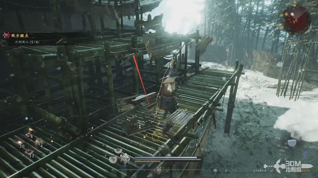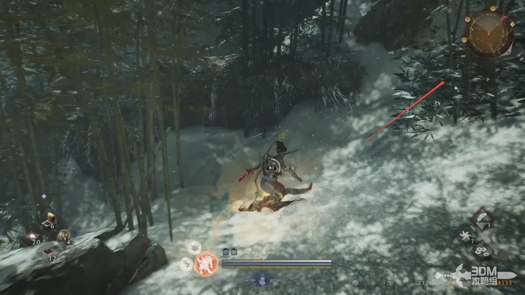 从旁边跳过去,这个斜坡右上方有敌人会推一个大雪球注意闪避预防!